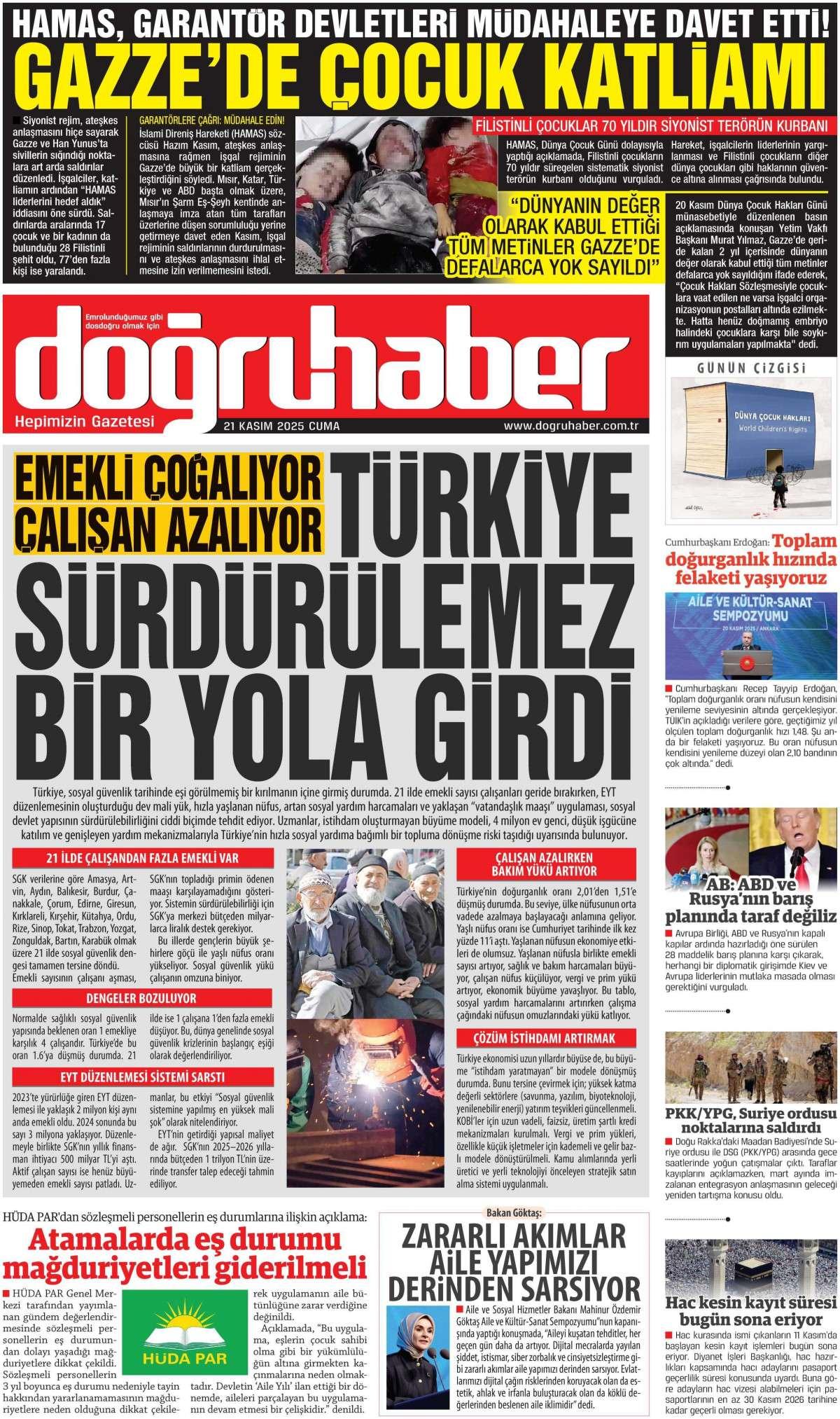 Doğru Haber Gazetesi 22 Kasım 2025 Günü Manşeti
