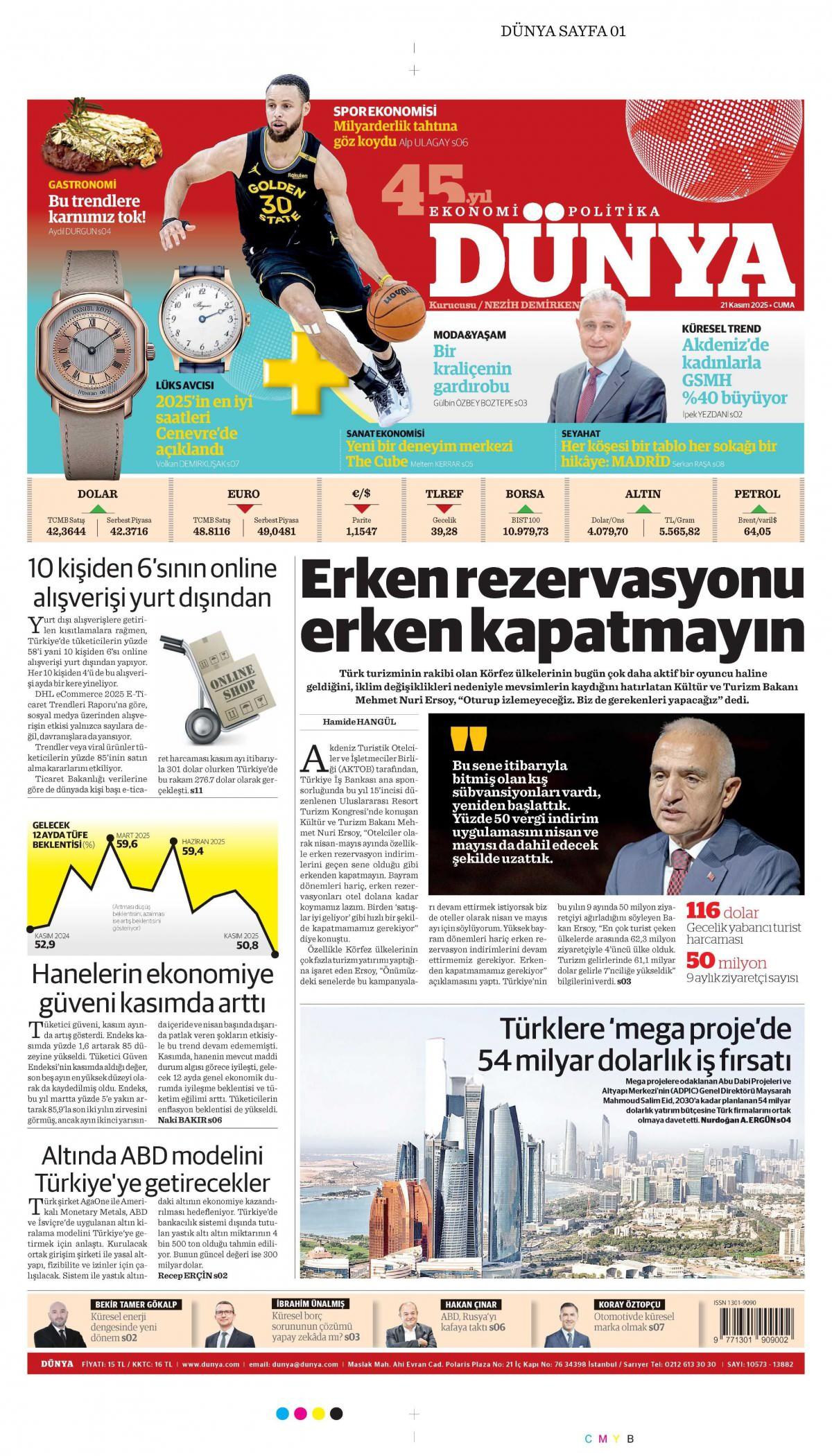 Dünya Gazetesi 22 Kasım 2025 Günü Manşeti