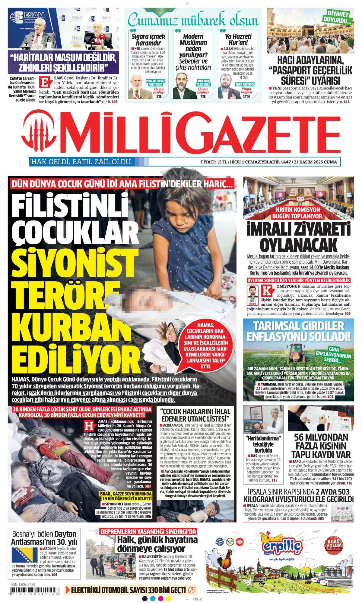 Milli Gazetesi 22 Kasım 2025 Günü Manşeti
