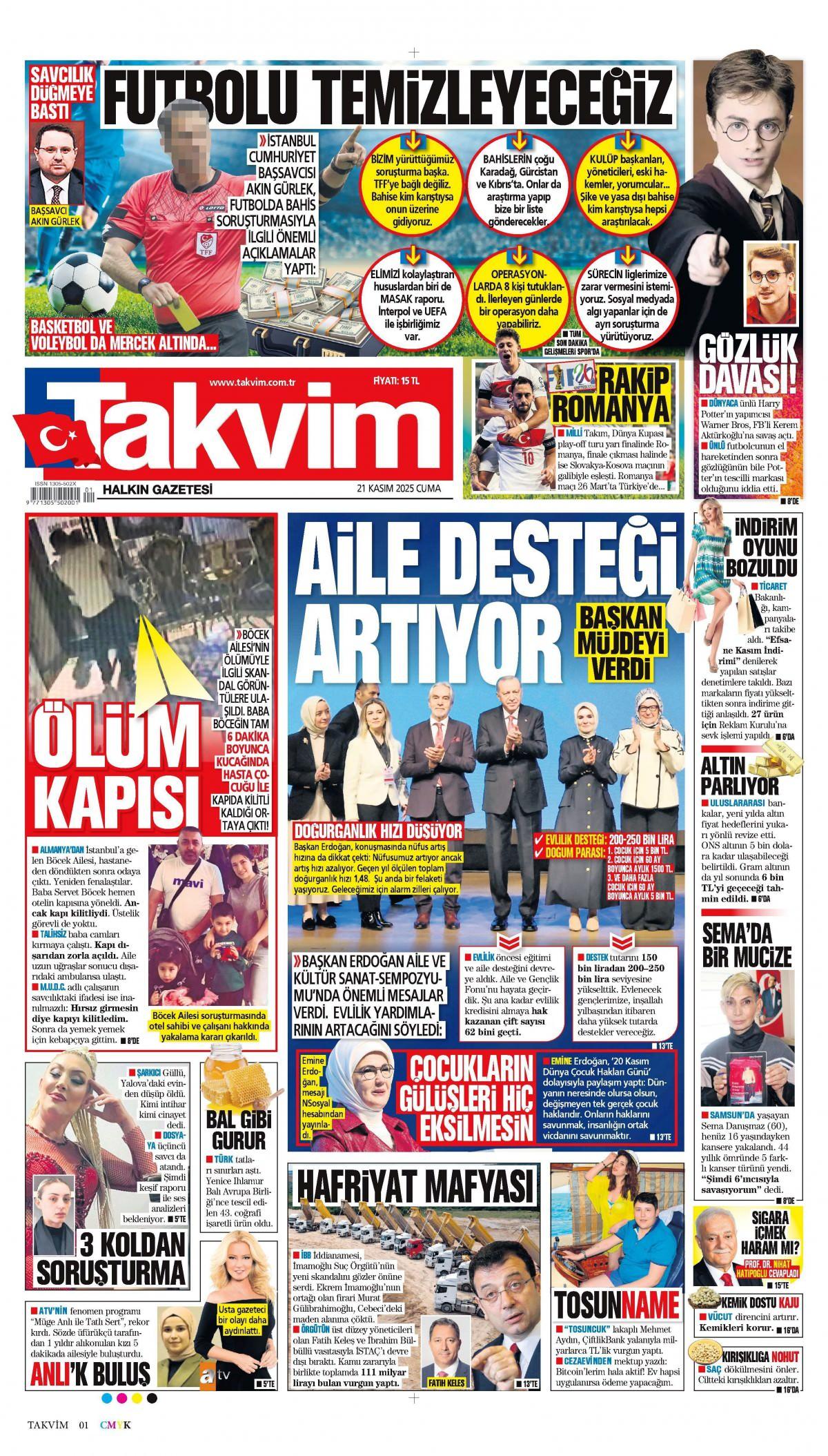 Takvim Gazetesi 22 Kasım 2025 Günü Manşeti