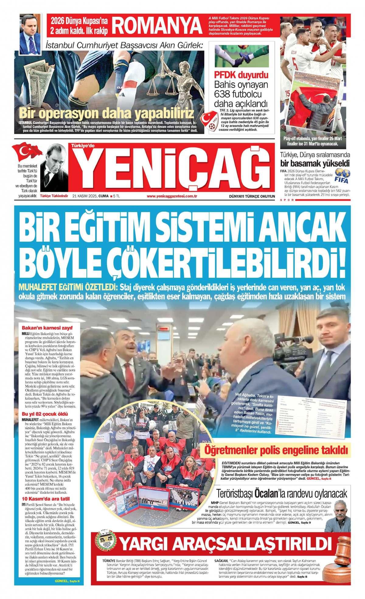 Yeni Çağ Gazetesi 22 Kasım 2025 Günü Manşeti
